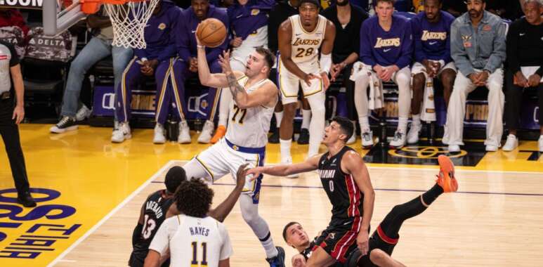 Luka Doncic selló este domingo su primer triple doble de la temporada, con 29 puntos, 11 rebotes y 10 asistencias, y así opacó los 31 puntos del mexicano Jaime Jáquez Jr. en el triunfo de Los Angeles Lakers 130-120 sobre Miami Heat.