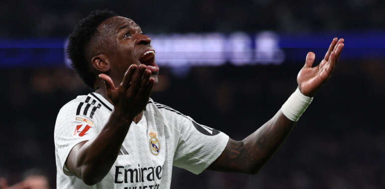Vinicius no logra rematar a puerta en una buena oportunidad en la segunda mitad del Real Madrid-Manchester CityChema Rey
