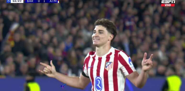 Julián Álvarez marcó un golazo de tiro libre para que Atlético de Madrid abra el marcador ante Barcelona por la ida de los octavos de final de la UEFA Champions League 2025-2026.